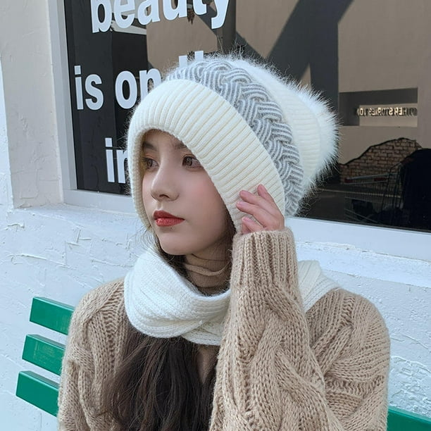 Kuizap Women S Crochet Knitted Beanie Hat Scarf Set Neck Thickened Warm Winter Ski Snow Caps White Walmart Ca